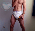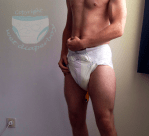 A few pics I just shot – some of them showing my cath (not the cleaning afterwards though), one for you muscle loving followers ( 😉 ) and the other ones showing my thick & wet Tena Maxi from a VERY old forgotten package as you can tell by the design of them.