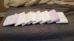 Molicare medium, Attends large, Seni Quattro regular, Seni Quattro large plus stuffer, Abena X-Plus 4 large, Molicare large, ABU Cushies xl.
