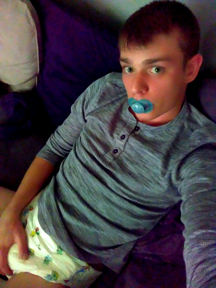 Yay 150 followers! Thank you all so much and as promised here is a pic of me all littled up sucking on my binki.